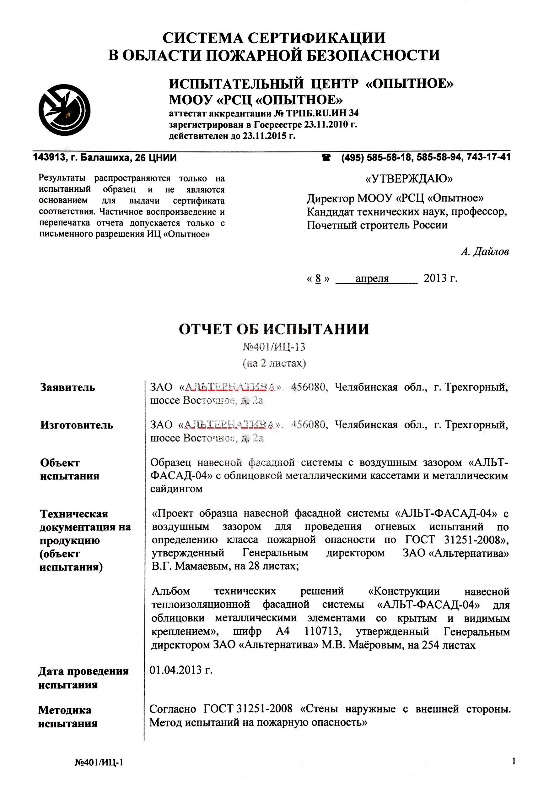 • Группа горючести облицовочного материала Г1