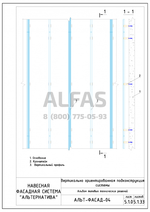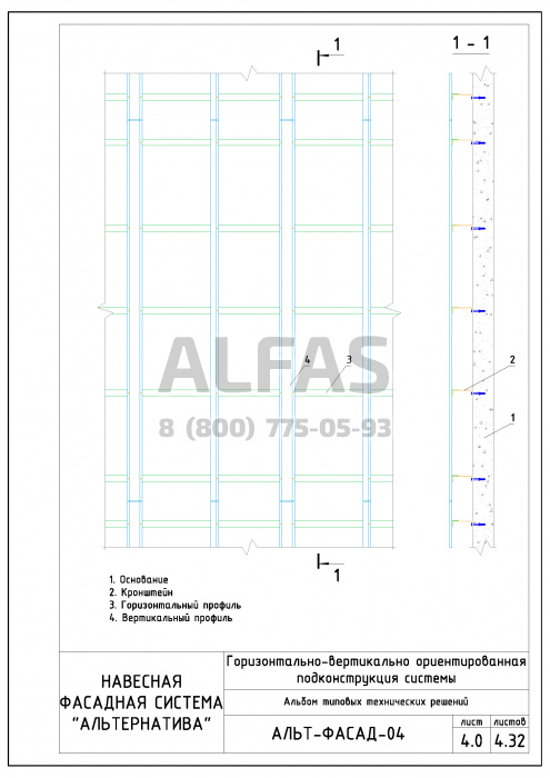 Фасадная система Альт-фасад 04 под Металлокассеты